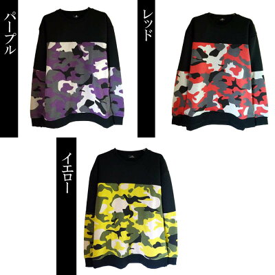長袖トレーナー 切替 カモフラージュ柄 迷彩 カモフラ カジュアル カットソー スウェット クルーネック スエット メンズ トップス B300906-01